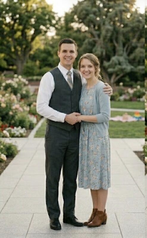 Gemini, make a couple that looks very Mormon without including explicit symbols of Mormonism like a temple or Book of Mormon.